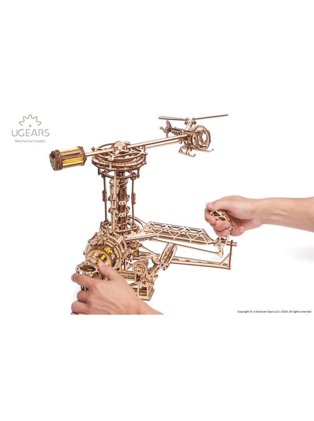 - Биплан и геликоптер реально ЛЕТАЮТ! Для этого в наборе есть специальная башня управлениям полётами с мощным резиномотором, а диспетчером этой башни станете Вы.