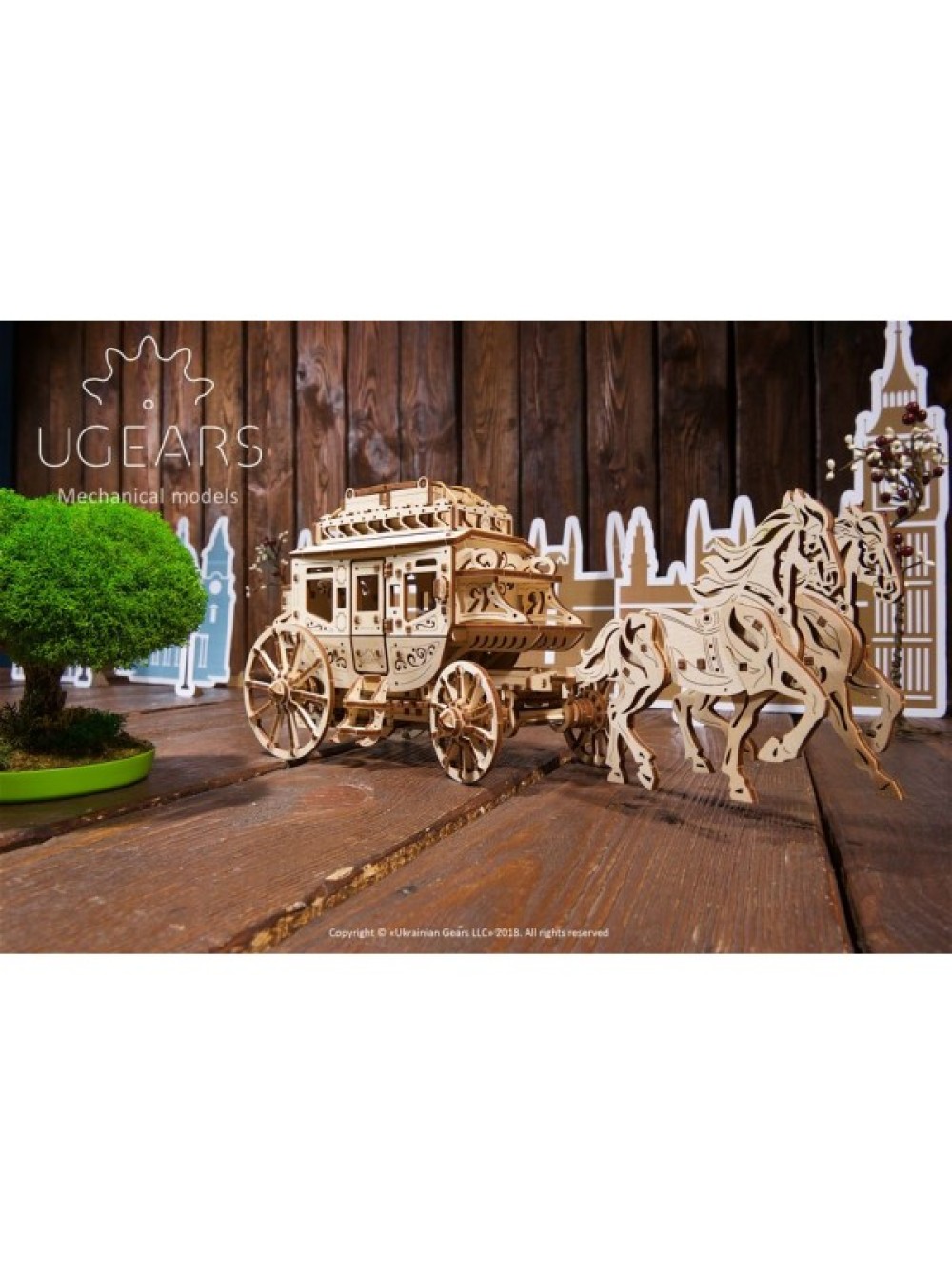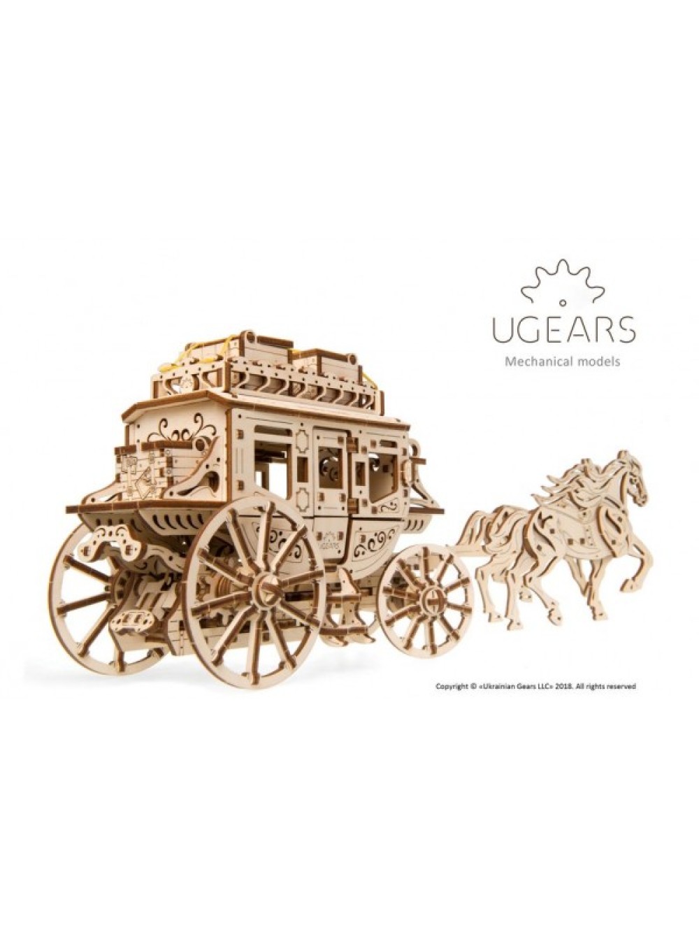 При создании почтового дилижанса UGEARS старался разработать модель, которая бы доставляла визуальное удовольствие утонченности и при этом могла принять вызов Дикого Запада, чтобы вы смогли воссоздать романтику того периода у себя дома в кругу семьи. В результате дилижанс получил монолитный каркас и достаточно прочные колеса, а также красивую кабину, которая придает модели характерный UGEARS внешний вид.