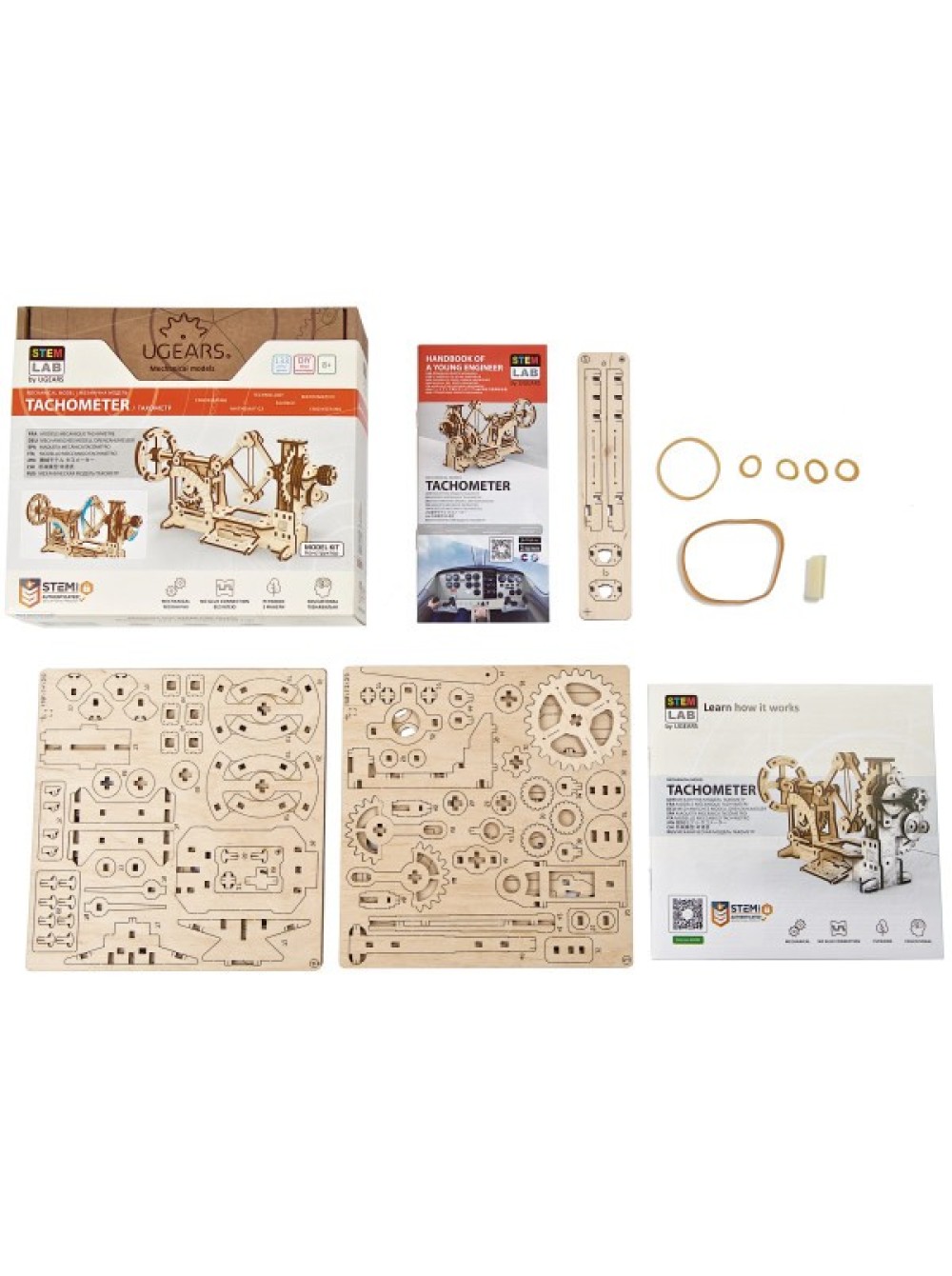 "Тахометр" от UGEARS - это деревянный конструктор, созданный специально для изучения работы механизмов. Он подходит и детям, и взрослым: всем, кому нравится точная механика! Из входящих в комплект деталей вы легко сможете собрать действующий тахометр: прибор для измерения числа оборотов в двигателях. Вращаете ручку, центральные грузы приходят в движение, а специальная стрелка показывает, с какой скоростью они крутятся. Механизм полностью открыт, видно каждую шестерёнку, поэтому сразу становится понятно, как это всё работает.